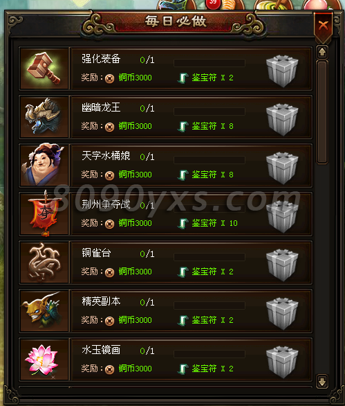 首先,很多玩家只会做任务信息栏中的任务。而忽视了每日必做中的任务。其实两者相比,每日必做中的任务更加简单,获得经验装备的也更加容易。但是要注意幽暗龙王和天字水桶娘每天是有固定的挑战时间的。