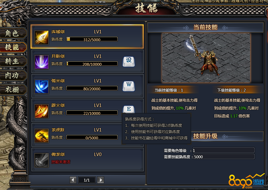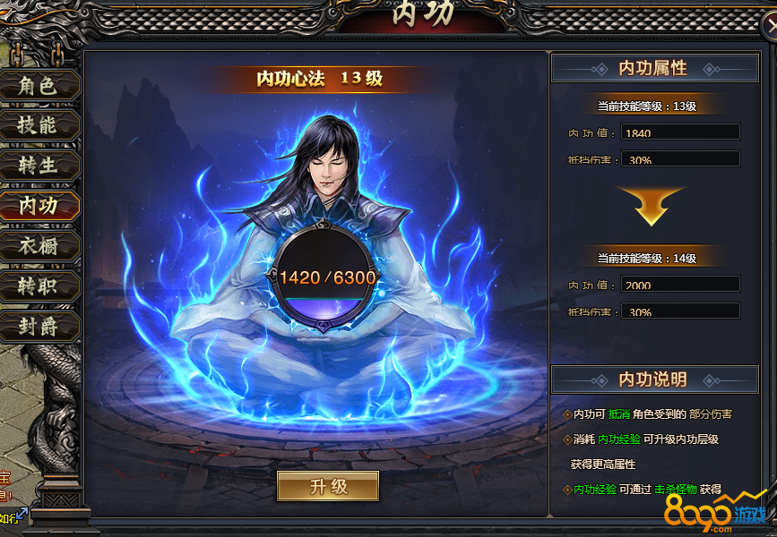 内力值可以通过打怪,参加活动也可以获得内功经验,内功经验可一直累积,经验条满后需要手动点击升级按钮进行升级。