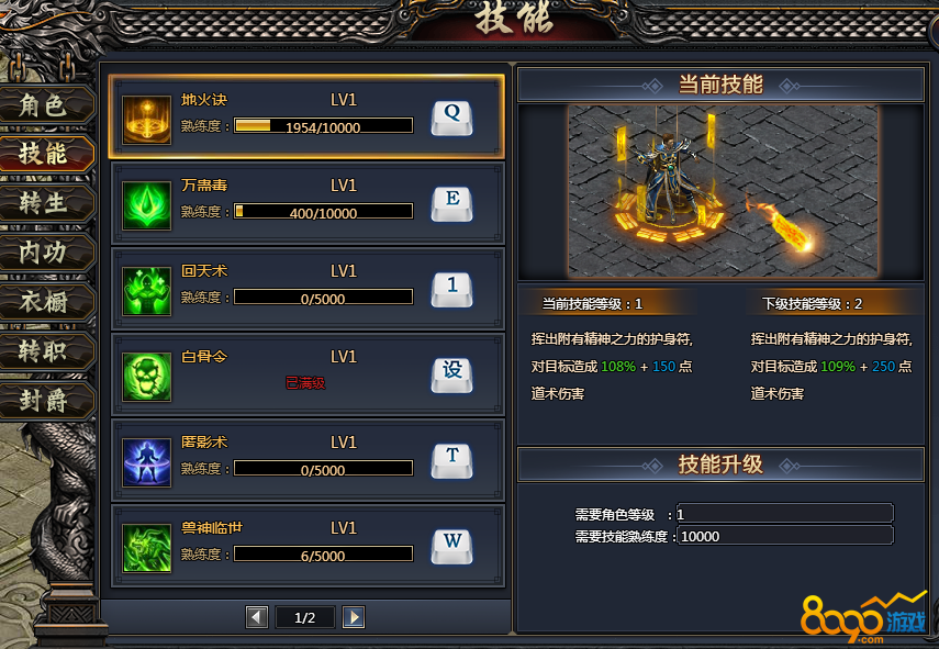 地火诀:挥出附有精神之力的护身符,对目标造成108%+150点道术伤害;