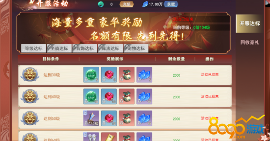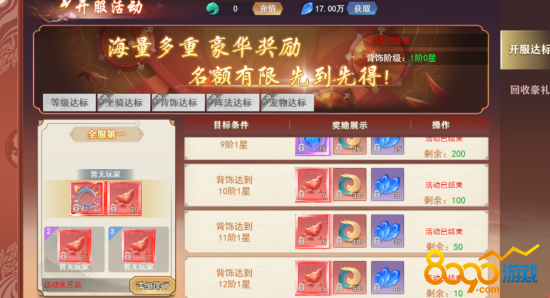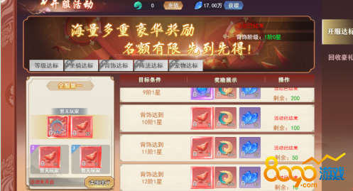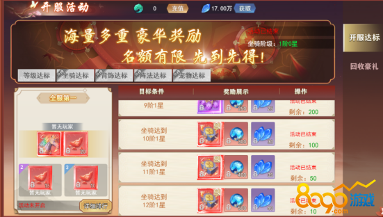 坐骑达标:坐骑达到一定的星级可获得丰富奖励,排行第一的玩家还可获得超炫坐骑及仙宠碎片。