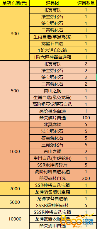 活动说明:满足单笔充值档位,任选其一,比如:单笔充值300元,8选1