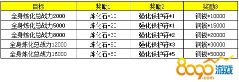 活动内容:全身装备炼化总战力达到一定值即可领奖;