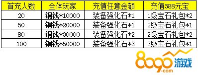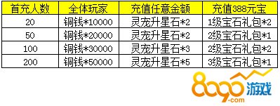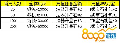 【活动内容】区服中每日首充玩家达到一定人数,即可解锁对应的奖励,所有符合对应条件的玩家即可获取一定奖励