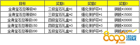 活动内容:全身装备镶嵌宝石总等级达到一定等级即可领奖;