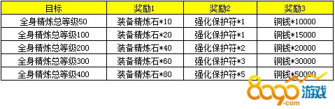 活动内容:全身装备精炼总等级达到一定等级即可领奖;