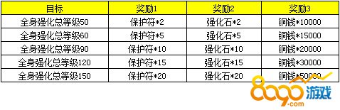 活动内容:全身装备强化总等级达到一定等级即可领奖;