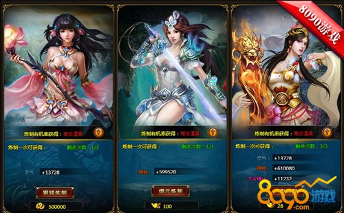 在8090神魔传说中要的就是激情,那么没有高级道具怎么激情的起来呢?要小编说要玩就玩点大的,比如淬炼,不管是铜钱炼制还是绑元炼制还是元宝炼制都有一定的机会获得高级道具哦,看脸的时候到了,就问你们一句帅不帅!
