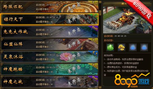 在8090神魔传说中魔由心生自然是获取经验最快速的副本之一,除此之外镖行天下玩法也是不能忽视的,除了可以大量的获得经验之外还可以获得灵气哦,用于大家洗练装备是再好不过的了!