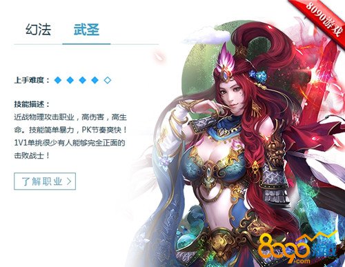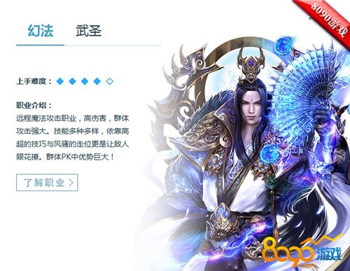 在8090神魔传说中,游戏的开始会有人物角色的选择,角色类型分为两种幻法和武圣!上手难度虽然都是一样的但是类型却相差十万八千里!幻法是指远程魔法攻击职业,高伤害,群体攻击强大。技能多种多样,依靠高超的技巧与风骚的走位更是让敌人眼花撩。群体PK中优势巨大!