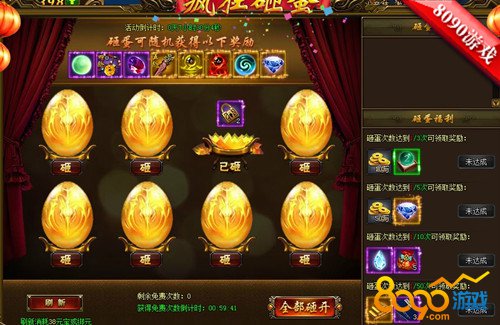 搜索"8090网页游戏"梦想总是要有的,万一实现了呢?在8090魔神传说,玩家可以自行参加疯狂砸蛋的活动,那么砸蛋有什么奖励呢,就让我们一起来看看吧!