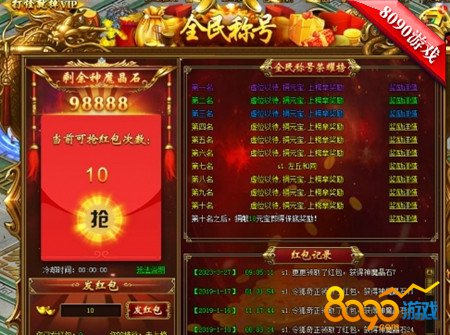 搜索"8090网页游戏"相信各位玩家都在现实生活中抢过红包吧,无奈红包数目太少,金额太小,尽管抢的十分费力,也只能抢到一星半点!现在各位玩家可以在8090神魔传说,抢红包啦!那么到底怎么玩呢,今天我们就一起来看看吧!