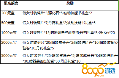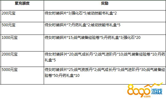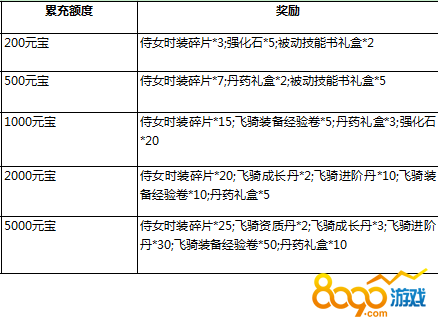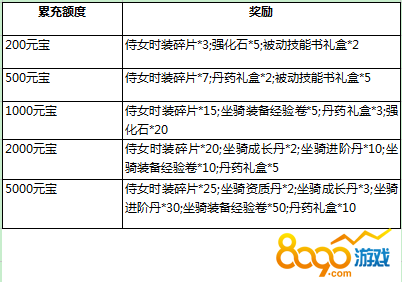 【活动内容】活动期间角色充值额度达到活动当天要求的各种档次,即可领取对应不同档次的超值大礼和珍稀道具。