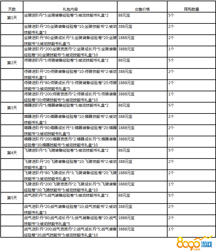 【活动内容】活动期间,每天会有不同的限购折扣礼包出售,优惠多多!