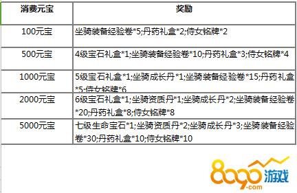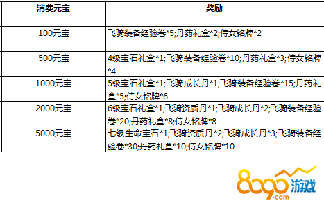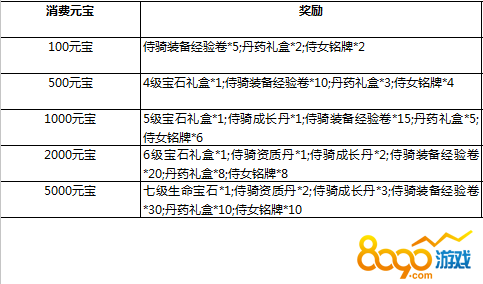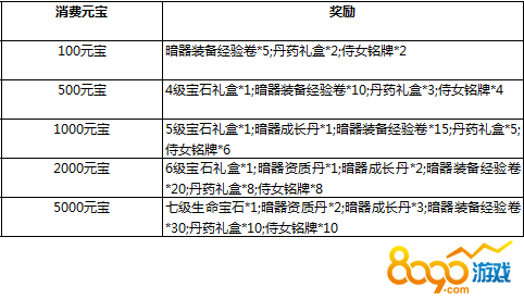 【活动内容】活动期间,玩家消耗非绑定元宝达到200元宝(消费200元宝即可获得参与奖),并且排名前100名的玩家可以获得丰厚大奖!