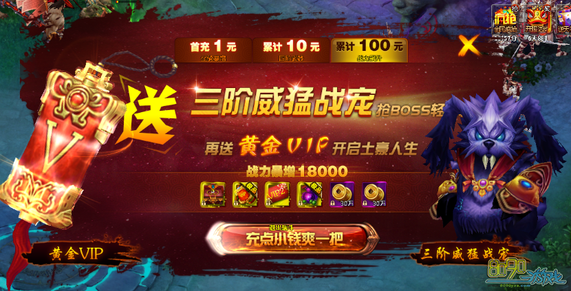 搜索"8090网页游戏"活动一:首充豪礼,珍稀仙子,极品武器。