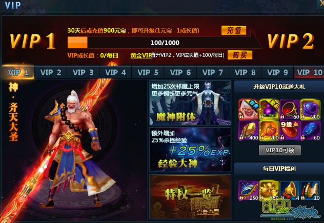 活动内容:玩家达到对应VIP等级,即可领取丰厚奖励。