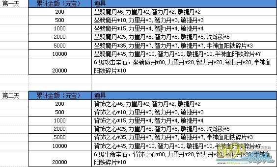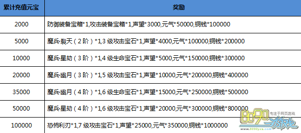 活动内容:活动期间角色累积充值达到指定额度,即可领取超值大礼以及珍稀道具。