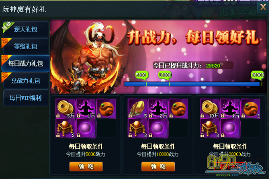 活动内容:玩家每日提升相应战力即可领取丰厚奖励!