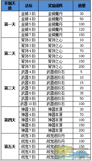 活动内容:指定时间进阶达到对应阶数即可领取奖励