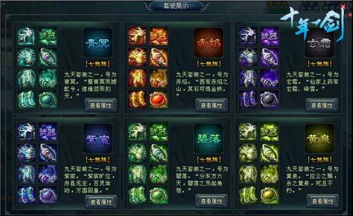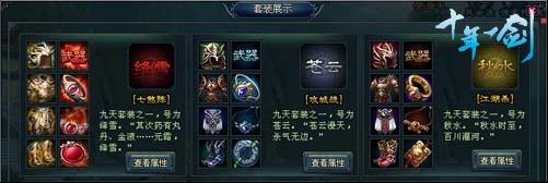 众所周知,在玩家40级以后,最好的装备就是——套装。而《十年一剑》中,一共有九种套装。每套套装的属性偏向都不相同,所以,选择一套与自己的家将属性相匹配的套装是极其重要的事。