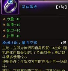 2阶戒指只有一个给伴侣加血的技能。3阶戒指在战斗中给对方加血并净化一下。小编建议玩家获得4阶的戒指,当玩家和伴侣组队打神曲副本和竞技场的时候,其中一个挂了就可以使用4阶戒指复活,迅速参加到战斗中。