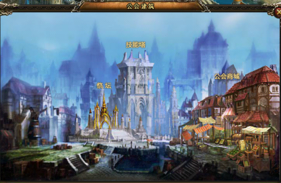 贡献值是很有用处的,用贡献值可为公会祈福。点开,公会建筑就会出现如下画面: