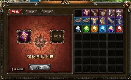 在铁匠铺花费少量的黄金,就可以对装备进行强化,从而提升自己英雄的属性。强化石绝对是个好东西,可以增加强化的几率,并且也不难获得,竞技场,完成任务、副本掉落、等都是可以获得的,简单快捷。