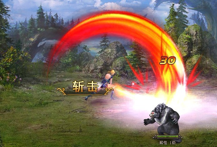 不啰嗦了,马上开始我的英雄之旅,嘿嘿。马上开始第一个任务,清理挡路的小怪。这不是牛刀小用吗?还好这时候学会了第一个技能斩击。