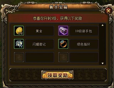 还没从这技能的表现里回过神来,呵呵,已经升到5级,终于可以找开系统赠送的5级礼包。有1W黄金、还有指环等,看来战争都会导致通货澎胀这个问题啊,5级就送1W的黄金。要想在乱世中成长那肯定要增强自己的实力,这1W黄金就当是发展基金,以后好好利用。