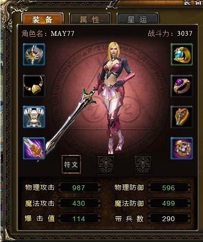 我创建的人物角色是战士,玩过网页游戏的朋友基本都知道,战士是属于皮糙肉厚的防御能力强悍的职业。虽然战士这个职业的本身的防御能力比较好,不过25级以后,提供的巨大战斗力和防御能力可以让你忽略掉战士本身的属性。所以在前期需要多多做些副本,打些比较好的装备和宝石。