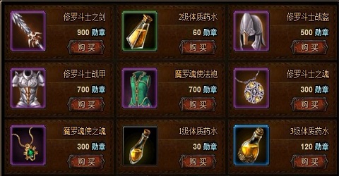 看到这个竞技商城的图片,相信大家都不陌生了。都流口水了吧。那么多极品装备,而且是用人民币买不到的,打战役副本以及迷宫都得不到的装备。这些极品装备只能够通过勋章获得,而且勋章的获得只能通过多人竞技获得。这也是很多和我一样玩神曲的玩家,中午12点到13点这个时间段,饭可以不吃,但是多人竞技一定要打的原因。