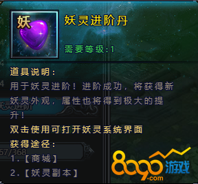 玩家获得妖灵后可以通过使用“妖灵进阶丹”提升妖灵等阶,妖灵等阶越高妖灵的外观越炫酷、妖灵能提供的属性也就越高。极大的提升玩家战斗力。