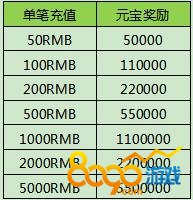 活动内容:活动期间,单日单笔充值达到对应要求即可获得元宝返利,活动仅限3天