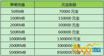 活动内容:活动期间,单日单笔充值达到对应要求即可获得元宝返利!!