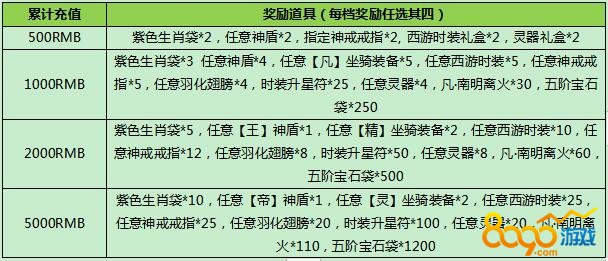 活动内容:活动期间,累计充值达到对应要求即可获得道具奖励!!