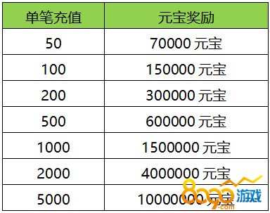 活动内容:活动期间,单日单笔充值达到对应要求即可获得元宝返利!!