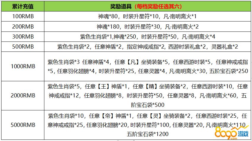 活动内容:活动期间,累计充值达到对应要求即可获得道具奖励!!