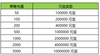 活动内容:活动期间,单日单笔充值达到对应要求即可获得元宝返利!!