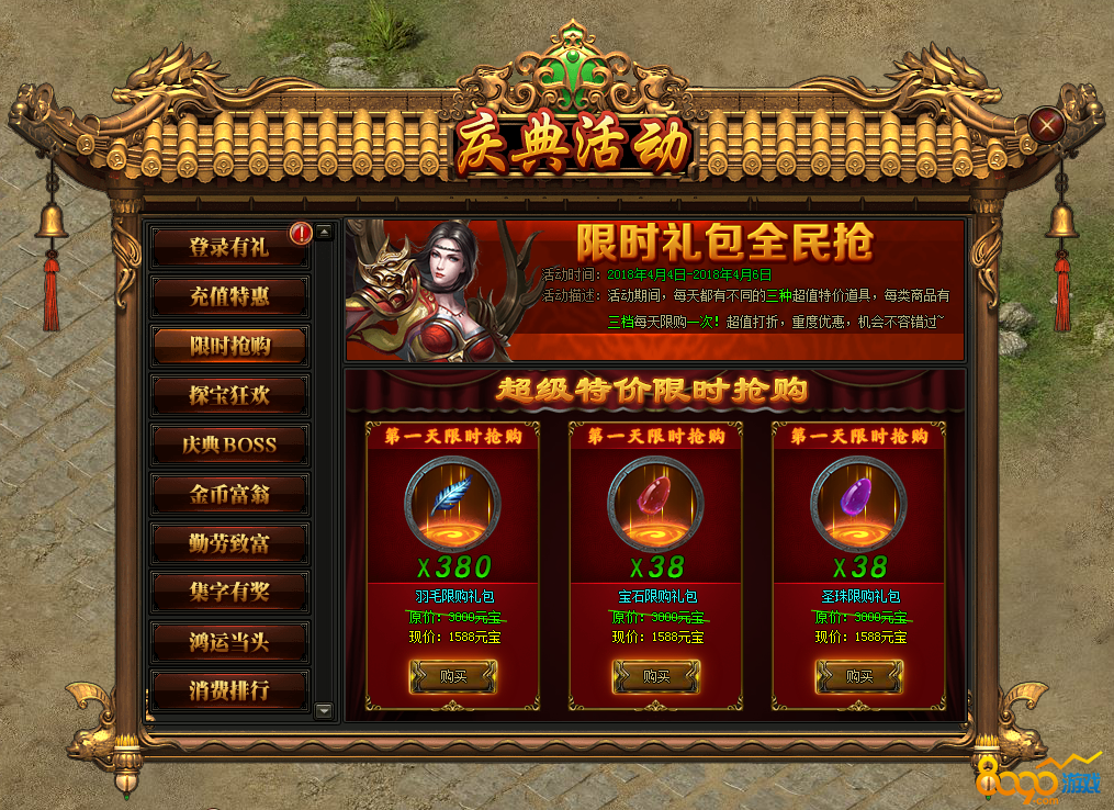集齐庆典来袭嗨爆全场兑换58000元宝