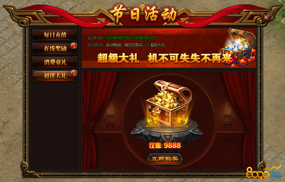 搜索"8090网页游戏"一、 每日充值 壕礼赠多重