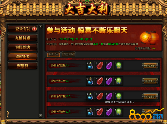 活动规则:在规定地图中消灭怪物达到指定数量,可领取对应奖励,活动仅限活动时间当天