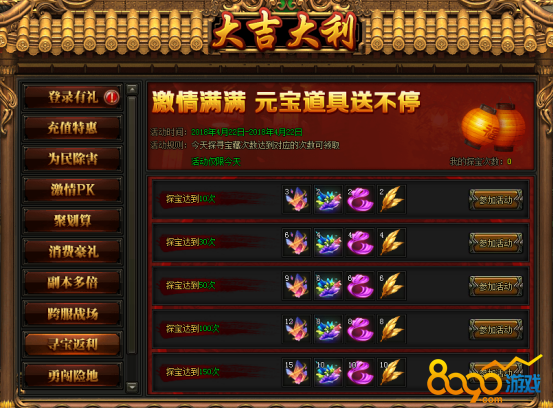 活动规则:今天探寻宝藏次数达到对应的次数可领取奖励