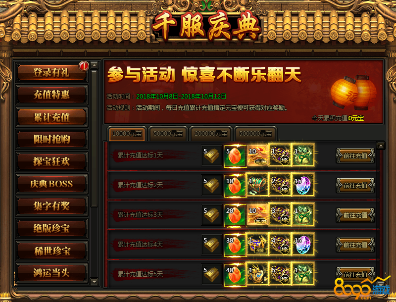 集齐庆典来袭嗨爆全场兑换58000元宝