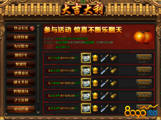 活动规则:在规定地图中消灭怪物达到指定数量,可领取对应奖励,活动仅限活动时间当天