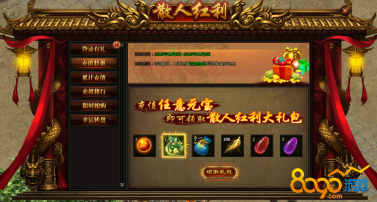 活动规则:活动期间,每充值任意金额即可领取豪华礼包。