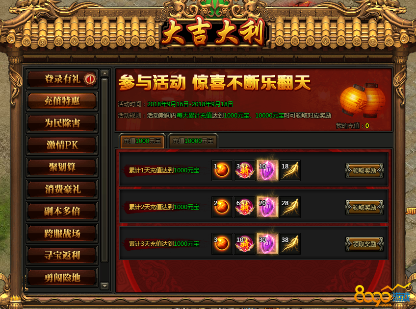 活动规则:活动期间累计充值达到需求时可领取对应奖励