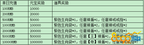 活动内容:活动期间,单日单笔充值达到对应要求即可获得100%的元宝返利,活动仅限2天!