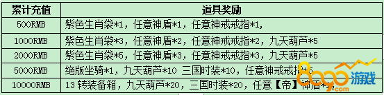 活动内容:活动期间,累计充值达到对应要求即可获得超值奖励。