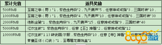 活动内容:活动期间,累计充值达到对应要求即可获得道具奖励,活动仅限3天!