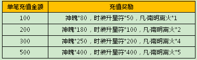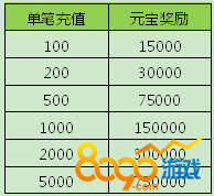 活动内容:活动期间,单日单笔充值达到对应要求即可获得元宝返利!!